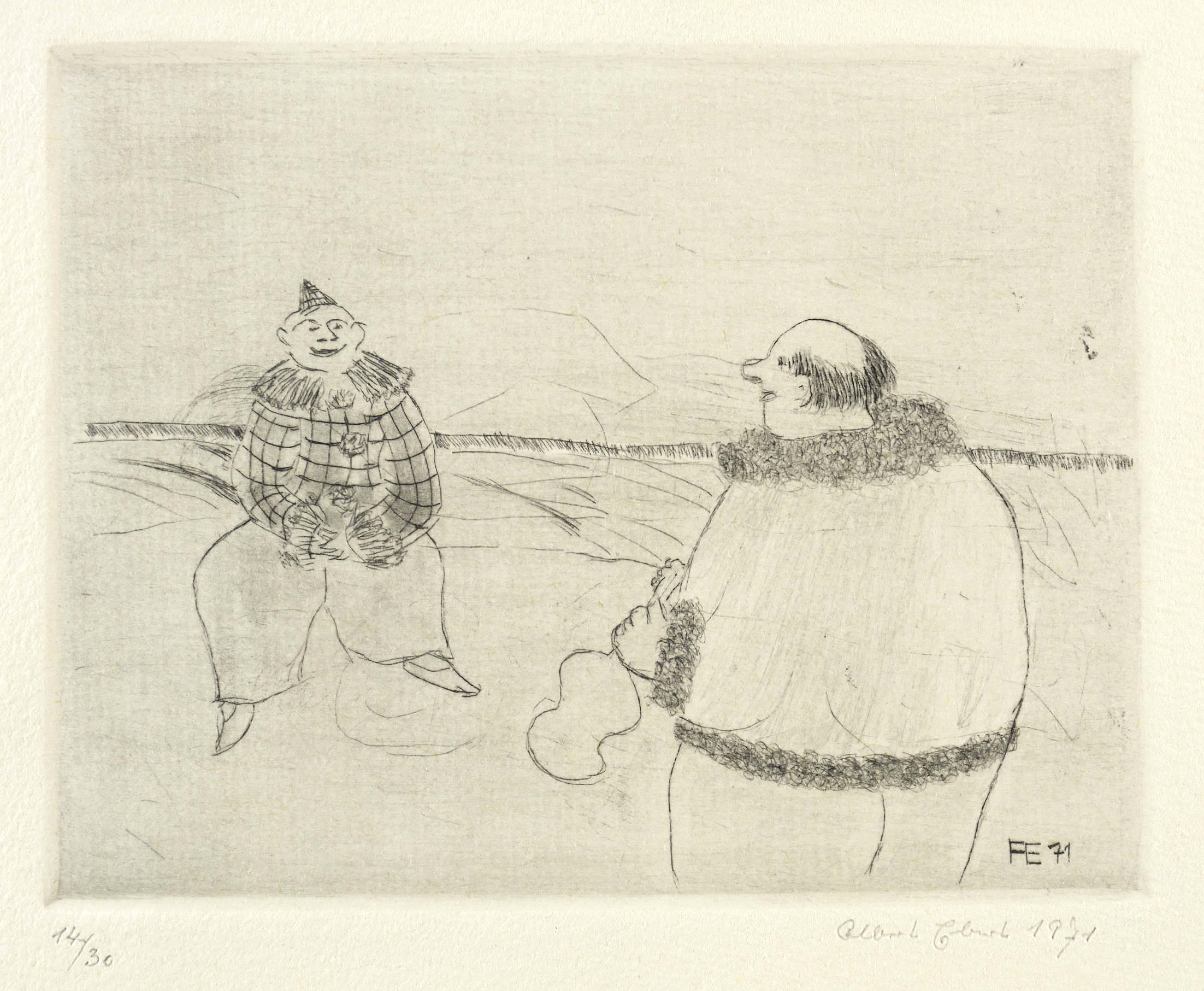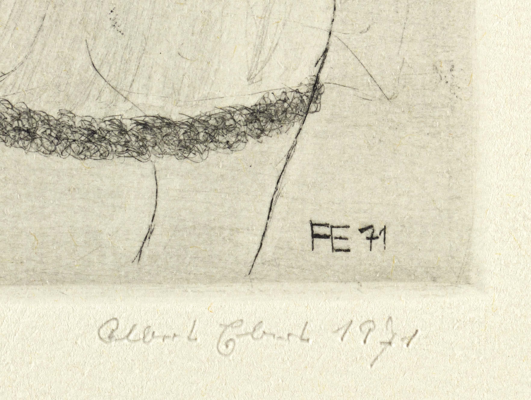 1971. Radierung / Kaltnadel, mit leichtem Plattenton, in Schwarz, auf schwerem Bütten. – Originale Künstlergrafik, von Albert Ebert. – Auflage Exemplar Nr. 14/30. – 12,8 x 16,2 cm (Darstellung / Platte), 26 x 27 cm (Blatt).