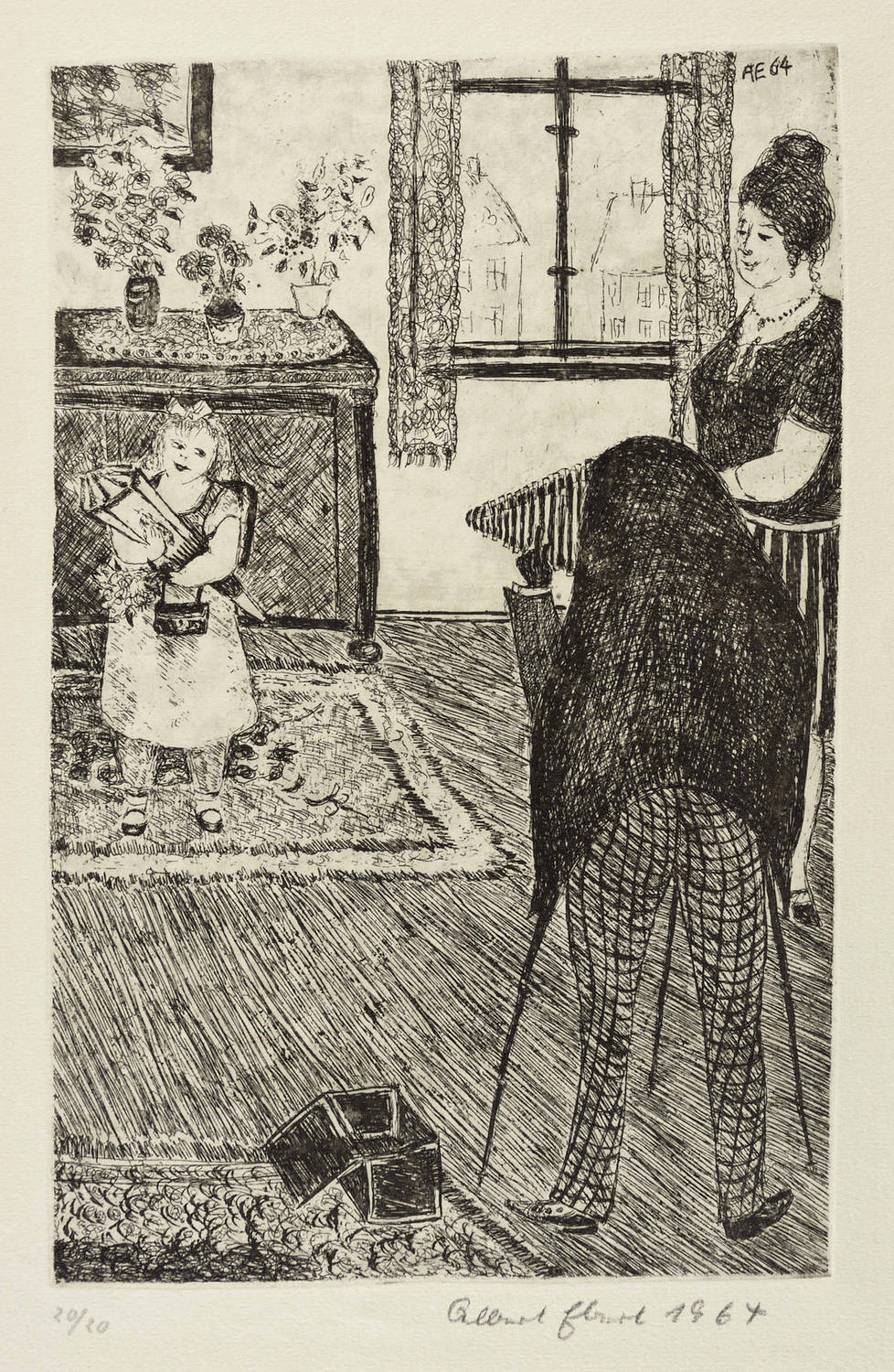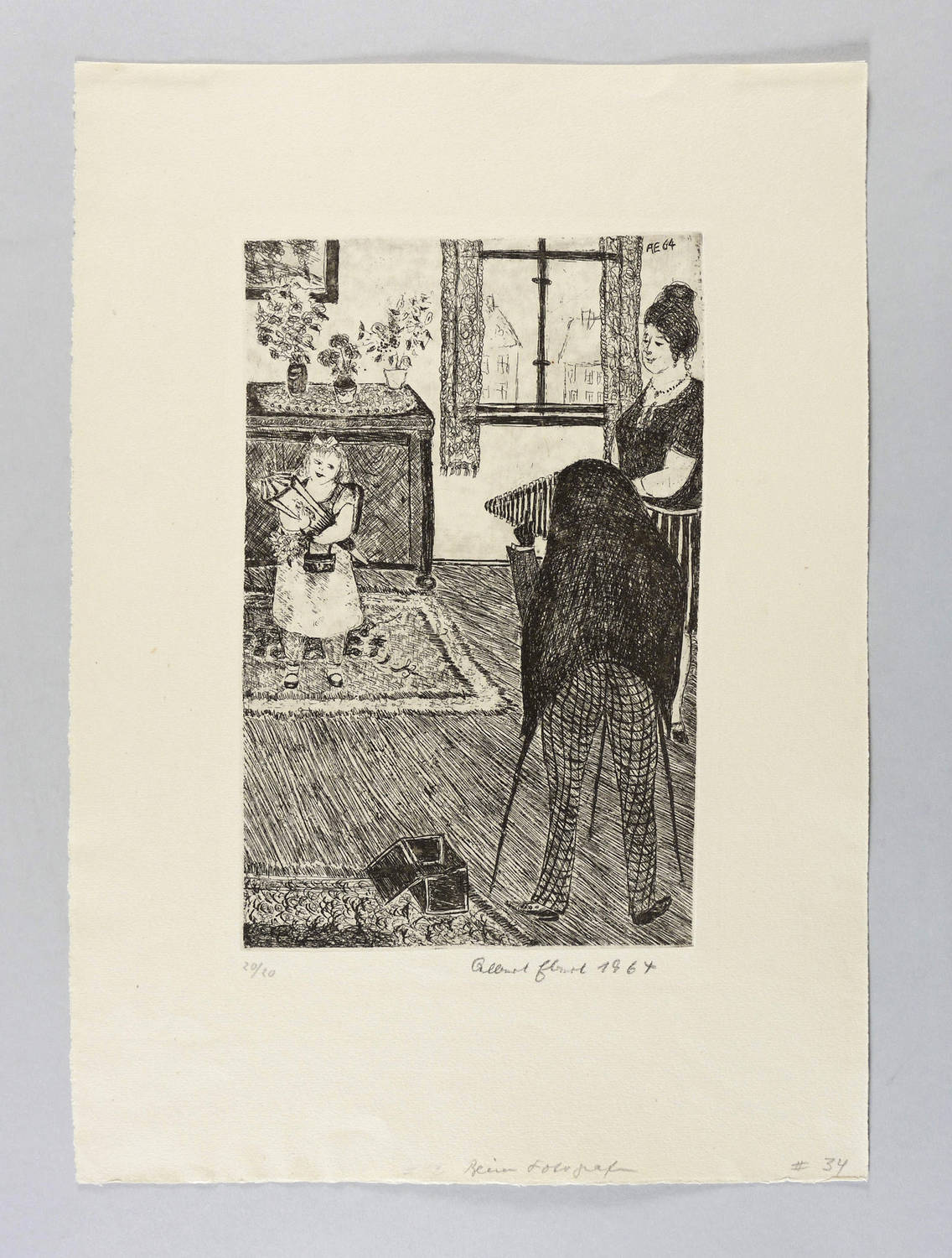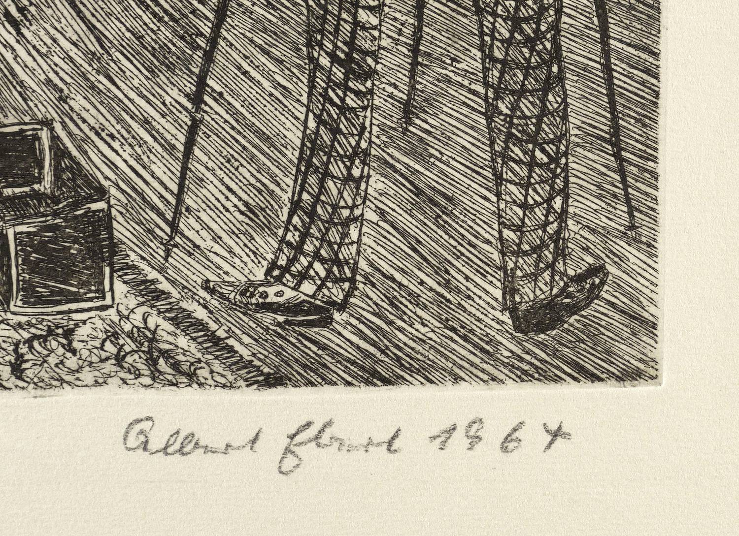 1964. Radierung / Kaltnadel, mit leichtem Plattenton, in Schwarz, auf gelbem Velin. – Originale Künstlergrafik, von Albert Ebert. – Auflage Exemplar Nr. 20/20. – 23,8 x 15,4 cm (Darstellung / Platte), 38 x 27 cm (Blatt).