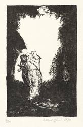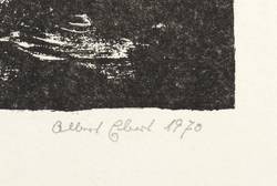 1970. Lithografie / Kreide- & Pinsellithografie, in Schwarz, auf glattem hellgelbem Velin. – Originale Künstlergrafik, von Albert Ebert. – Auflage Exemplar Nr. 4/30. – 13,2 x 8,4 cm (Darstellung / Druckbild), 20,5 x 17 cm (Blatt).