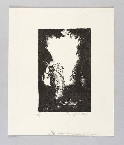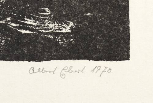 Brade-Stula L 43. – Rechts unten in Bleistift signiert und datiert: ″Albert Ebert 1970″. Links Auflagenbezeichnung. Im Stein links unten teilweise spiegelverkehrt Monogramm und Jahr: ″AE 70″. Am unteren Blattrand von fremder Hand Sammlungs-Nr. und Titel. – Provenienz: Sammlung Gottfried Müller (1921- 2013). 1974-2011 Inhaber der Evangelischen Buchhandlung und Antiquariat Max Müller in Chemnitz (Karl-Marx-Stadt). – Sehr guter Zustand.