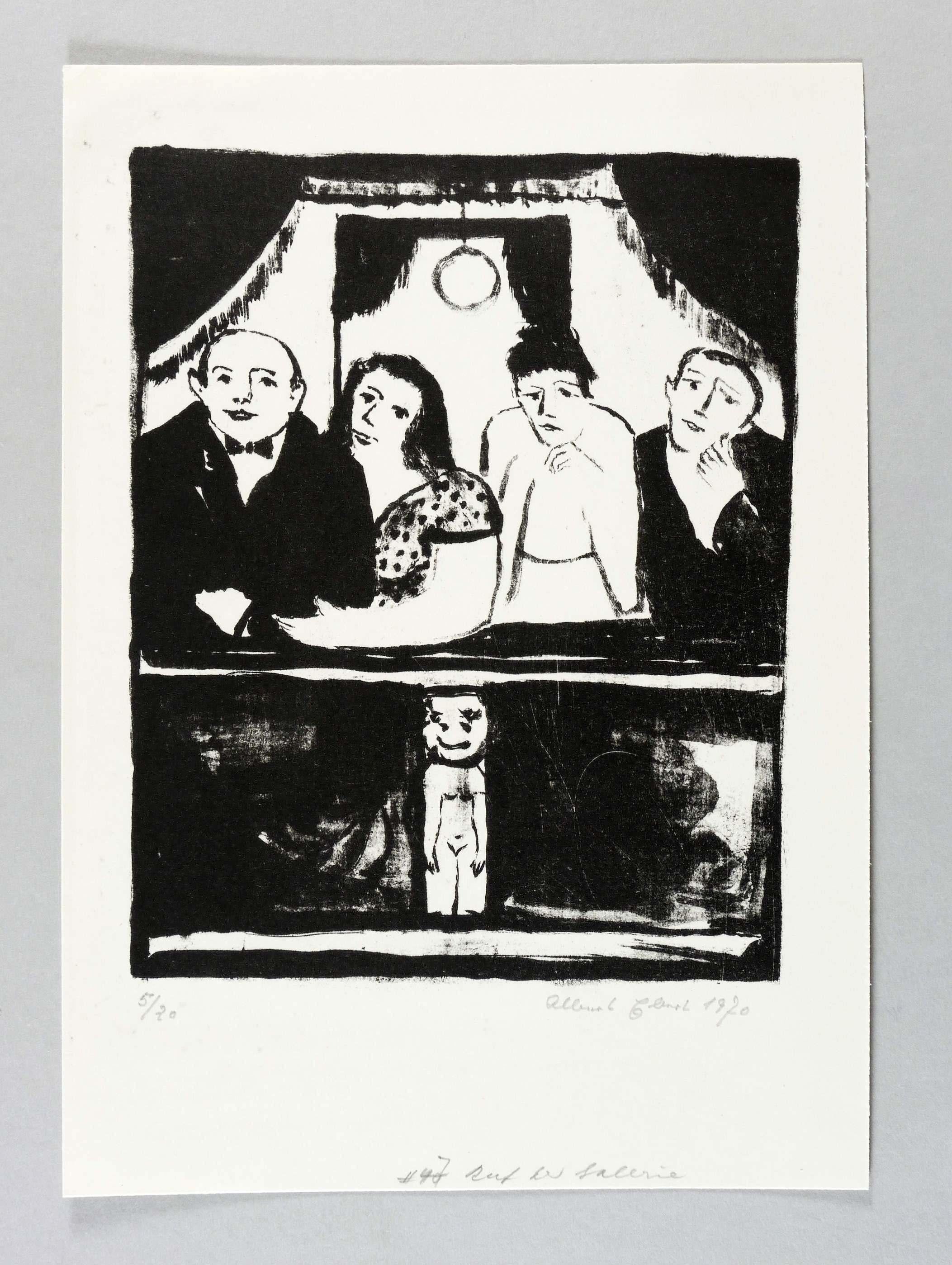 1970. Lithografie / Pinsel- & Schablithografie, in Schwarz, auf weißem Velinkarton. – Von Albert Ebert. – Auflage Exemplar Nr. 5/20. – 17,2 x 13,7 cm (Darstellung / Druckbild), 23 x 17 cm (Blatt).