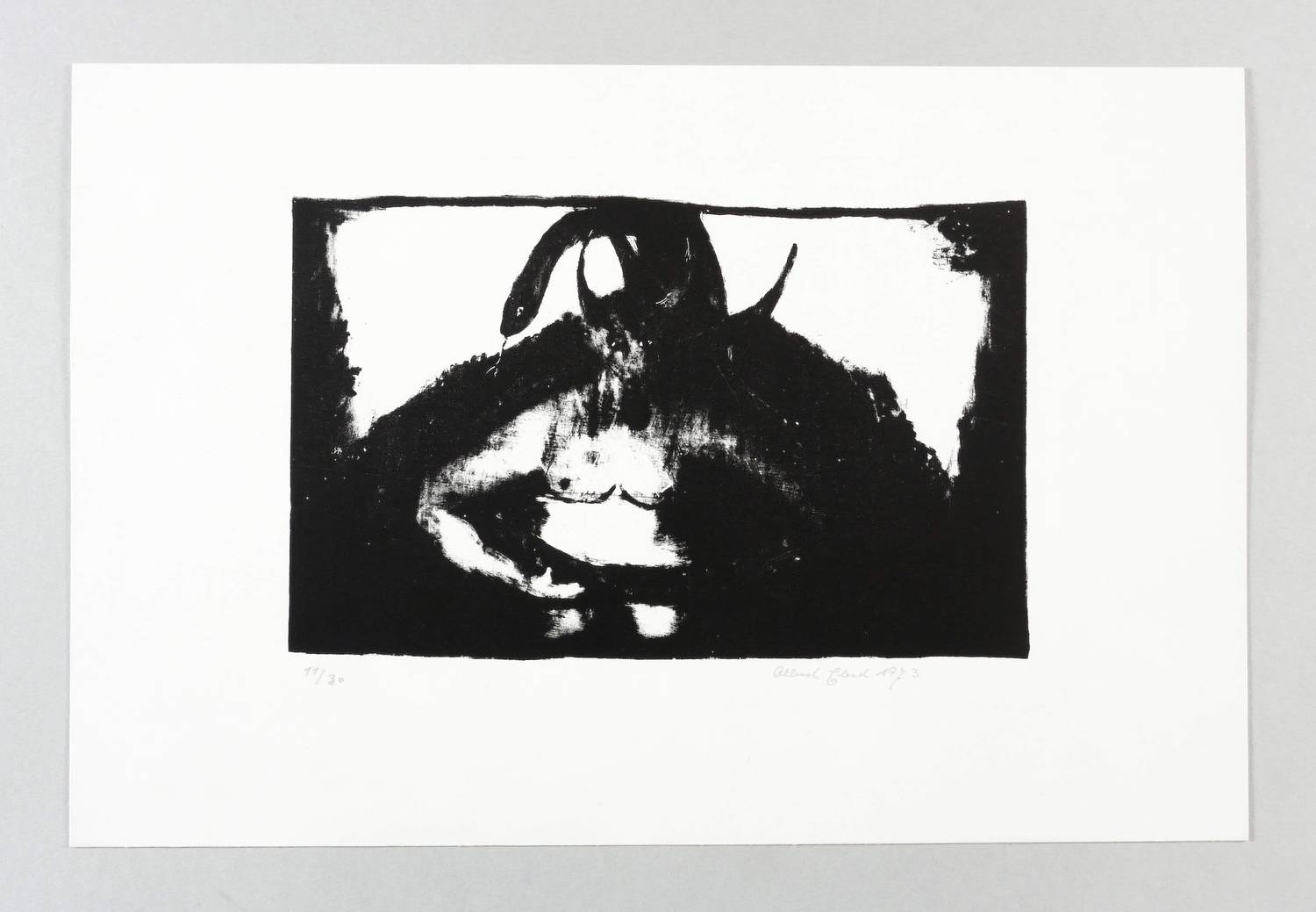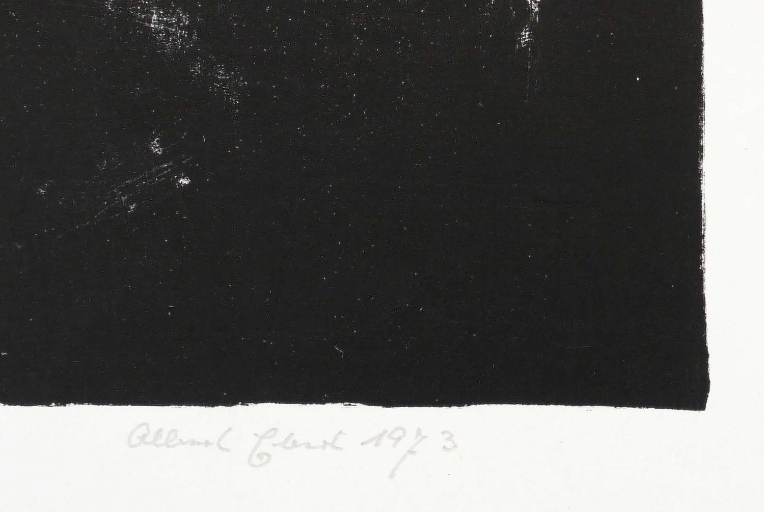 1973. Lithografie / Pinsellithografie, partiell gewischt & geschabt, in Schwarz, auf glattem Velinkarton. – Originale Künstlergrafik, von Albert Ebert. – Auflage Exemplar Nr. 11/30. – 12,3 x 19,5 cm (Darstellung / Druckbild), 21 x 31 cm (Blatt).