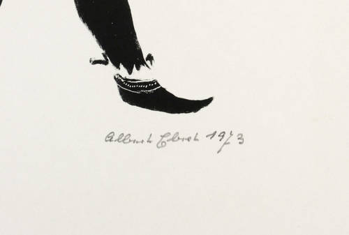 1973. Lithografie / Pinsellithografie, partiell geschabt, in Schwarz, auf Velinkarton. – Originale Künstlergrafik, von Albert Ebert. – Auflage Exemplar Nr. 17/30. – 17,2 x 13,2 cm (Darstellung / Druckbild), 30 x 29 cm (Blatt).