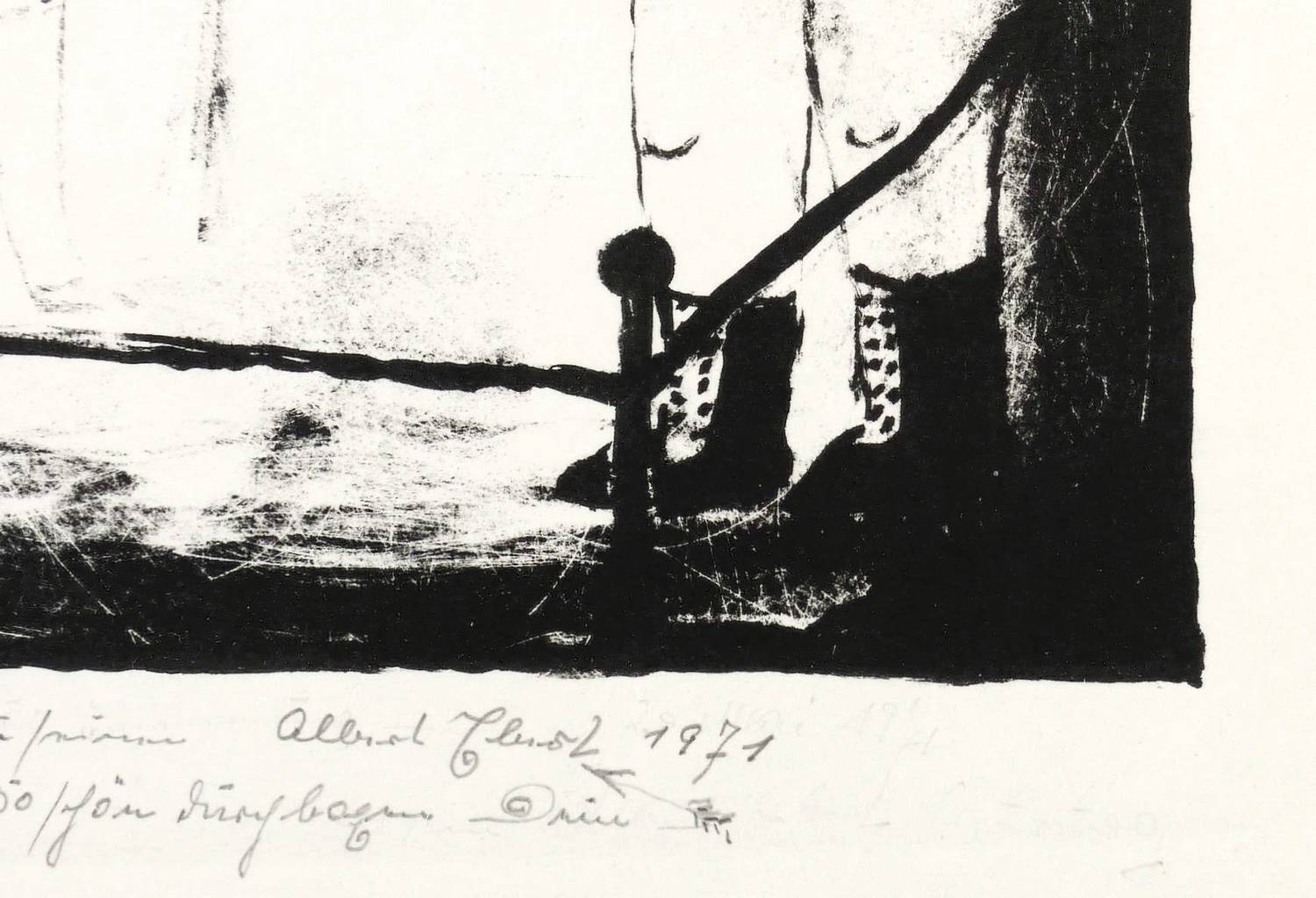 1971. Lithografie / Pinsellithografie, partiell geschabt, in Schwarz, auf Velinkarton. – Originale Künstlergrafik, von Albert Ebert. – Auflage Exemplar Nr. 30/30. – 12,8 x 17,8 cm (Darstellung / Druckbild), 27 x 35 cm (Blatt).