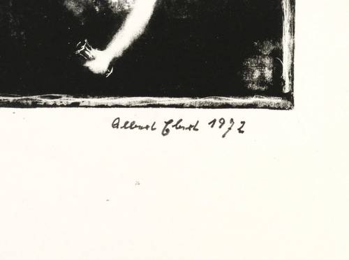 1972. Lithografie / Pinsellithografie, partiell geschabt, in Schwarz, auf Velinkarton. – Originale Künstlergrafik, von Albert Ebert. – Auflage Exemplar Nr. 9/30. – 12,7 x 13,1 cm (Darstellung / Druckbild), 35 x 27 cm (Blatt).