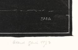 1973. Lithografie / Pinsellithografie, partiell geschabt, in Schwarz, auf Velinkarton. – Originale Künstlergrafik, von Albert Ebert. – Auflage Exemplar Nr. 4/10. – 24,9 x 25,0 cm (Darstellung / Druckbild), 37 x 31 cm (Blatt).