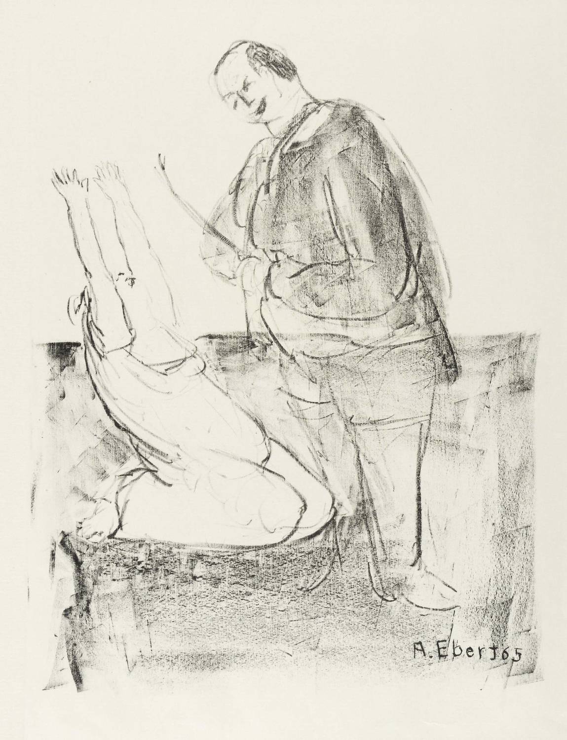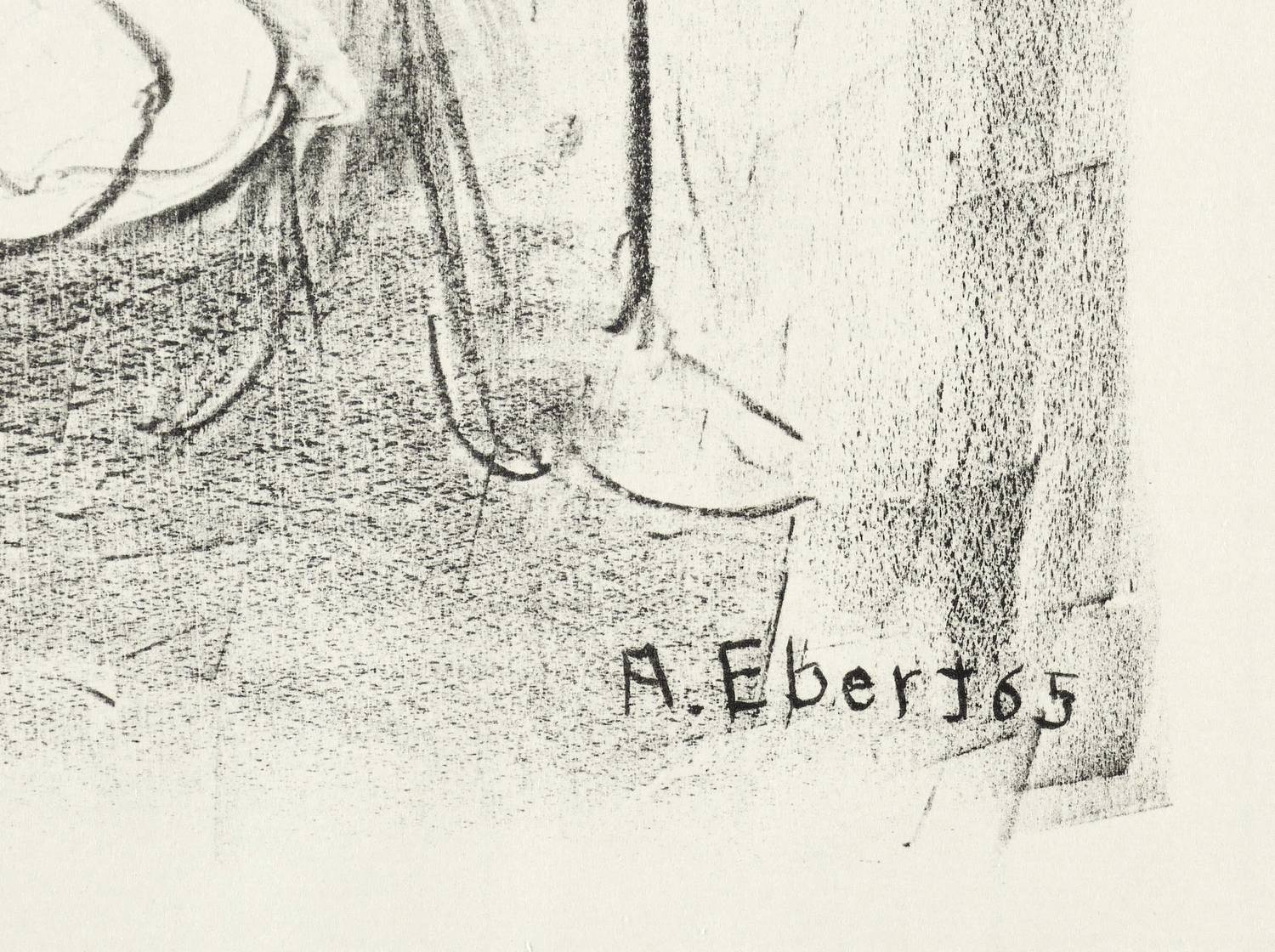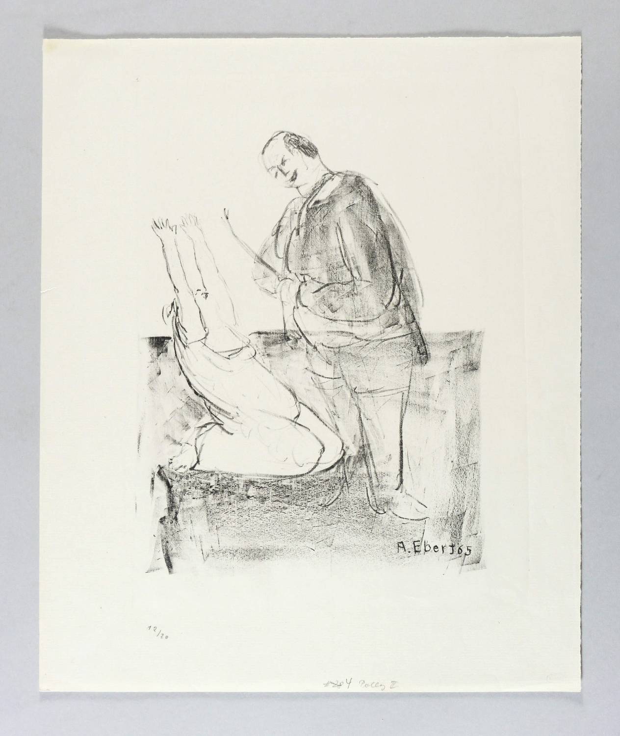 1965. Lithografie / Kreidelithografie, in Schwarz, auf leichtem hellchamois Maschinenbütten. – Originale Künstlergrafik, von Albert Ebert. – Auflage Exemplar Nr. 12/20. – 26,4 x 20,6 cm (Darstellung / Druckbild), 39 x 32 cm (Blatt).