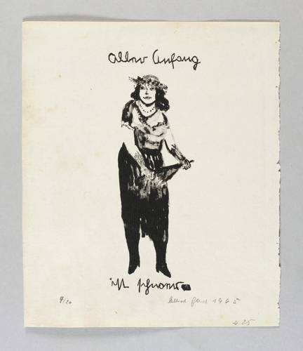 Brade-Stula L 1. – Rechts unten in Bleistift signiert und datiert: ″Albert Ebert 1965″. Links Auflagenbezeichnung. Im Stein ober- und unterhalb Inschrift: ″Aller Anfang ist schwer″. Dazu die Nummerierung: ″1″. Am unteren Blattrand rechts von fremder Hand Sammlungs-Nr. – Provenienz: Sammlung Gottfried Müller (1921- 2013). 1974-2011 Inhaber der Evangelischen Buchhandlung und Antiquariat Max Müller in Chemnitz (Karl-Marx-Stadt). – Papier altersbedingt leicht fleckig. Sonst guter Zustand.