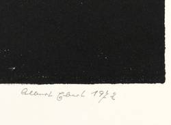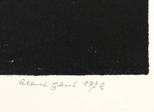 1972. Lithografie / Pinsellithografie, partiell gewischt & geschabt, in Schwarz, auf Velinkarton. – Originale Künstlergrafik, von Albert Ebert. – Auflage Exemplar Nr. 15/30. – 26,4 x 34,8 cm (Darstellung / Druckbild), 30 x 43 cm (Blatt).