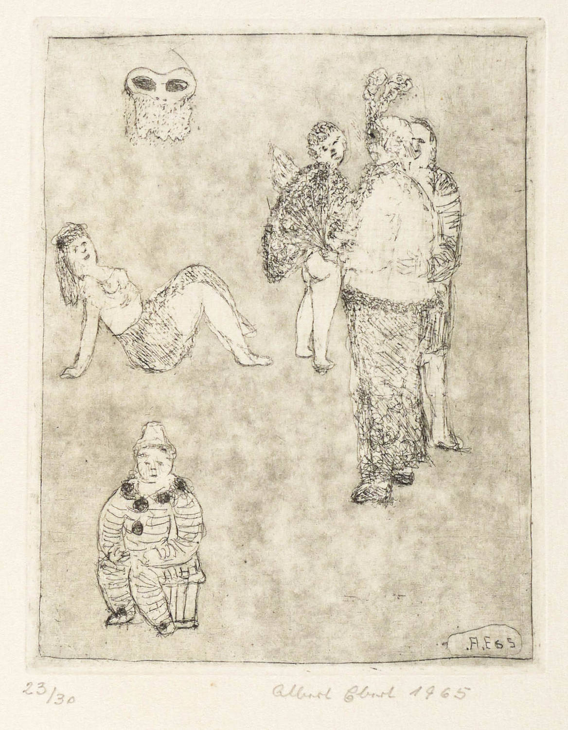 Brade-Stula R 43. – Rechts unten in Bleistift signiert und datiert: ″Albert Ebert 1965″. Links Auflagenbezeichnung. In der Platte rechts unten nochmals Signatur und Jahr: ″A.E. 65″. – Ein besonderes seltenes Blatt des Künstlers. – Originalrandiges unbeschnittenes Exemplar. Ohne Mängel. Sehr guter Zustand.