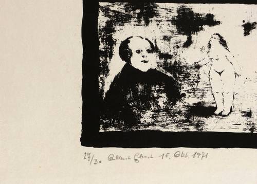 Brade-Stula L 53. – Links unten in Bleistift signiert und datiert: ″Albert Ebert 15. Okt. 1971″. Dazu Auflagenbezeichnung: ″27/30″. – Mehrteiliges Blatt auf einem Stein. – Auf großem unbeschnittenem Bogen. Ohne Mängel. Sehr guter Zustand.
