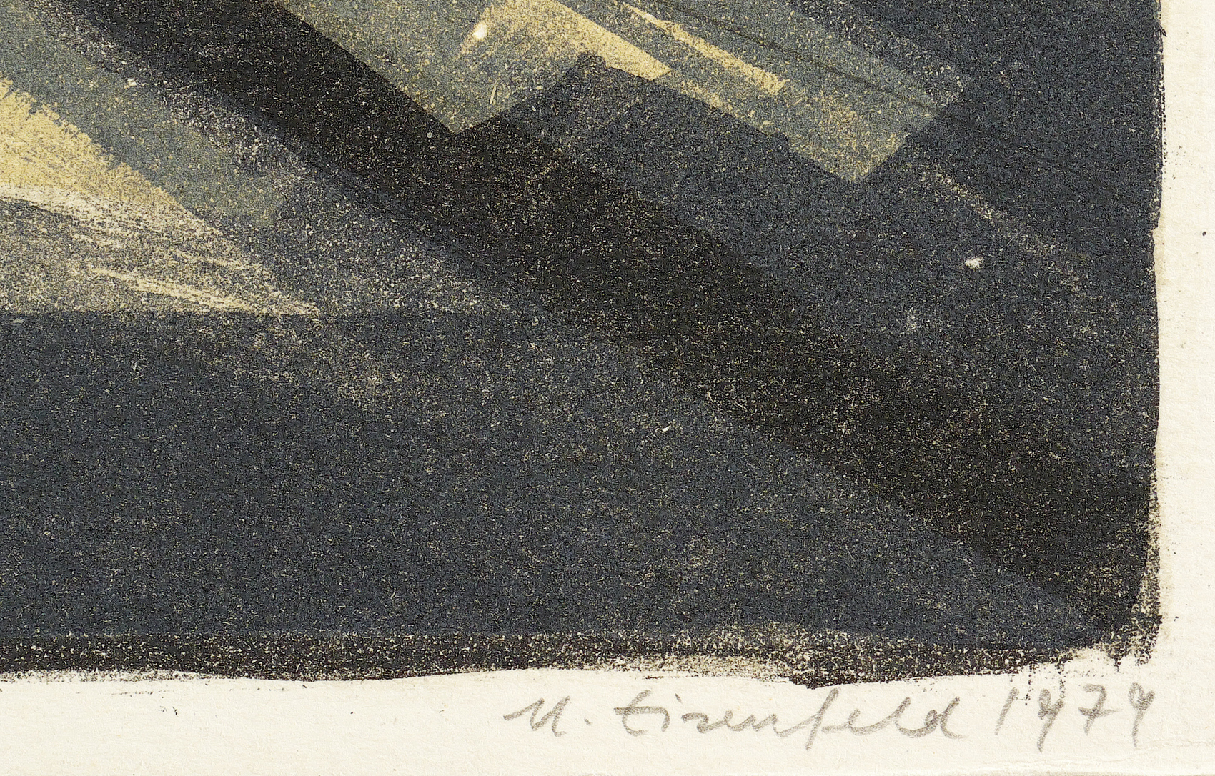 1979. Farblithografie / Kreide- & Pinsellithografie, in 3 Farben, auf hellem Karton. – Originale Künstlergrafik, von Ulrich Eisenfeld. – Auflage Exemplar Nr. 18. – 31,3 x 41,5 cm (Darstellung / Druckbild), 33 x 43 cm (Blatt).