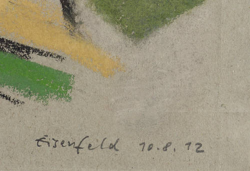 Rechts unten in Bleistift signiert und datiert. – Ulrich Eisenfeld begreift seine Pastellarbeiten in ihrer stofflichen, koloristischen Dichte und ihrem oft vielschichtigen Aufbau als Malerei auf Papier. Dem entsprechend lassen sie sich kaum als bloße Zeichnungen verstehen. – Vom Künstler auf Trägerkarton montiert. Tadelloser Zustand.