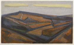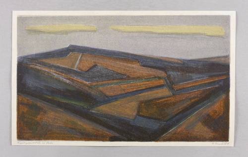 1979. Farblithografie / Kreide- & Pinsellithografie, in 5 Farben, auf hellchamois Velinkarton. – Originale Künstlergrafik, von Ulrich Eisenfeld. – Auflage 28 Exemplare. – 21,4 x 36,1 cm (Darstellung / Druckbild), 22,9 x 37,8 cm (Blatt).