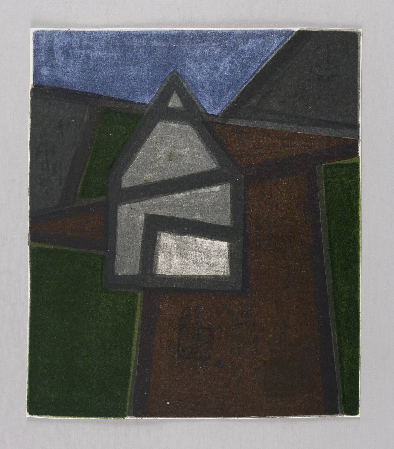 1977. Farblithografie / Kreidelithografie, partiell geschliffen, in 6 Farben, auf glattem hellgelbem Karton. – Originale Künstlergrafik, von Ulrich Eisenfeld. – Druckerexemplar. – 26,1 x 22,4 cm (Darstellung / Blatt).