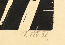 Rechts unten in Bleistift signiert: ″S.M. 32.″ Links eigenhändig bezeichnet: ″Holzschnitt N. 9″. In der rechten unteren Ecke Sammlerstempel Hanns Conon v.d. Gabelentz mit Wappen. – Der Mäzen und spätere Sammlungsdirektor des Lindenau-Museums in Altenburg Hanns Conon v.d. Gabelentz (1892-1977) ist bekannt für sein Förderung von Holzschnitt-Künstlern wie Conrad Felixmüller und Frans Masereel. – Papier altersbedingt etwas gedunkelt. Im Rand leichte Lagerspuren. Insgesamt gut erhalten.