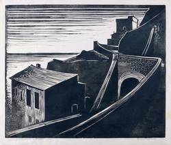 Karnahl 49. – Rechts unten in Bleistift signiert: ″Herbert Tucholski″. Links Titel und Technikbezeichnung: ″Monterosso (Handdruck). – Bei Karnahl unter dem Titel ″Toscana″ geführt. – Im unteren Rand ältere geglättete Knickspuren, dadurch die Beschriftung etwas in Mitleidenschaft gezogen. Rechter Rand schwach fleckig. Insgesamt mäßig guter Zustand.