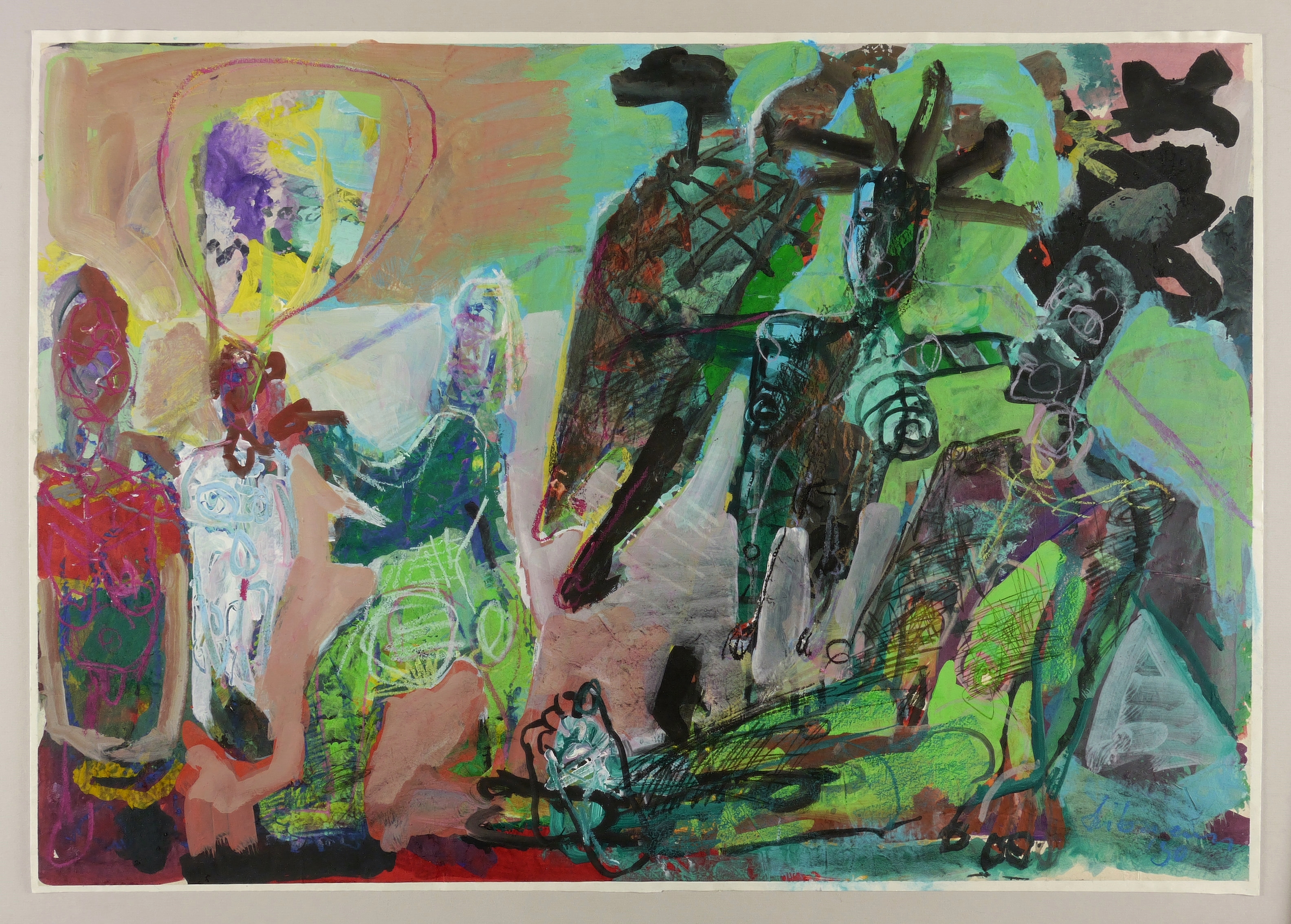 1990. Mischtechnik / Aquarell, Tusche, Farbkreide & Gouache, auf weißem Karton. – Originale Künstlergrafik, von Werner Liebmann. – Unikat. – 62,3 x 89,0 cm (Darstellung / Blatt).