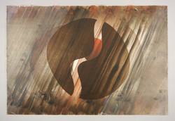1983. Mischtechnik / Tempera, Kreide & Gouache, über Pochoir, auf kräftigem weißem Hahnemühle. – Originale Künstlergrafik, von Klaus Dennhardt. – Unikat. – 53,8 x 79,3 cm (Darstellung / Blatt).