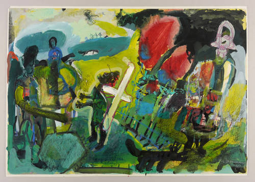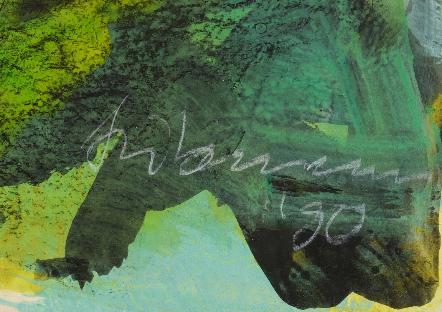 1990. Mischtechnik / Aquarell, Tusche, Farbkreide & Gouache, auf weißem Karton. – Originale Künstlergrafik, von Werner Liebmann. – Unikat. – 62,8 x 88,5 cm (Darstellung / Blatt).