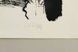 1985-1990. Siebdruck / Serigrafie, in Schwarz, auf rauem hellchamois Bütten. – Originale Künstlergrafik, von Peter Schnürpel. – Auflage Exemplar Nr. 1/20. – 53,8 x 41,7 cm (Darstellung / Druckbild), 65 x 53 cm (Blatt).