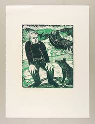 1991. Farbholzschnitt, in Grün & Schwarz, auf kräftigem hellchamois Johannot-Velin. – Originale Künstlergrafik, von Esteban Fekete. – Künstlerexemplar (e.a.). – 43,3 x 34,7 cm (Darstellung / Druckstock), 77 x 57 cm (Blatt).