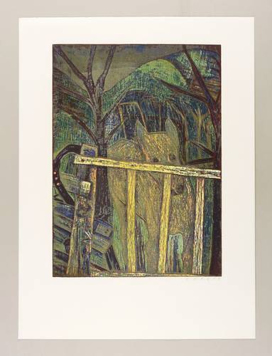 Esteban Fekete (1924 Cinkota / Budapest - 2009 Dieburg). Deutsch-argentinischer Maler, Zeichner und Grafiker. Arbeitete in verschiedenen Techniken wie Öl und Tempera, aber auch in Mischtechniken auf Papier, Holz oder Hartfaser. Anfang der 1970er Jahre entstanden Email-Bilder, Zeichnungen und Linolschnitt. Seine ureigene Technik ist allerdings der Holzschnitt, insbesondere der Farbholzschnitt, mit dem er sich einen Namen machte. So entwickelte er eine eigene Schnitt- und Bearbeitungstechnik für die Holzplatten. Für die Farbgebung verwendete er eigens dafür gesuchte Ölfarben.