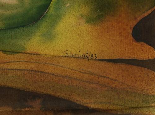 In der Darstellung rechts unten in schwarzer Tusche signiert und datiert: ″GHuniat / 83″. – Unterer Blattrand etwas gestaucht. Sonst guter Zustand.