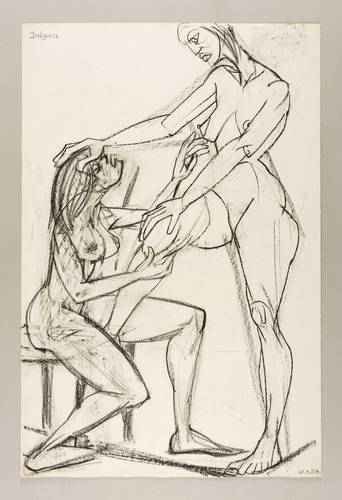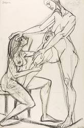 1958. Zeichnung / Kreidezeichnung, in Schwarz, auf glattem weißlichem Karton. – Originale Künstlergrafik, von Franziskus Dellgruen. – Unikat. – 78,8 x 52,1 cm (Darstellung / Blatt).