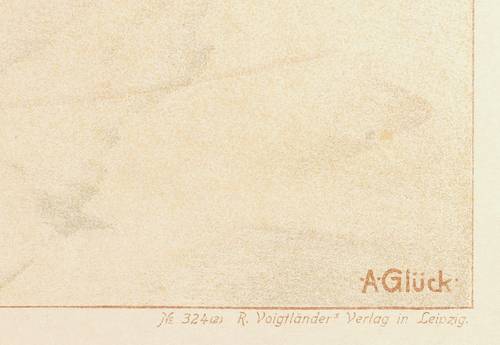 Um 1915. Farblithografie / Kreidelithografie, in 4 Farben, auf hellem glattem Karton. – Originale Künstlergrafik, von Anton Glück. – 41,1 x 30,0 cm (Darstellung), 57 x 44 cm (Blatt).