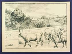1915. Lithografie / Kreidelithografie, in Schwarzblau, auf gelblichem Karton. – Originale Künstlergrafik, von Arthur Volkmann. – 47,7 x 65,5 cm (Darstellung), 54 x 72 cm (Blatt).