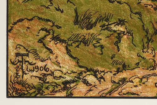 1906. Farblithografie / Feder- & Pinsellithografie, in 7 Farben, auf gelblichem Karton. – Originale Künstlergrafik, von Hans Thoma. – 43,7 x 60,2 cm (Darstellung / Druckbild), 60 x 73 cm (Blatt).