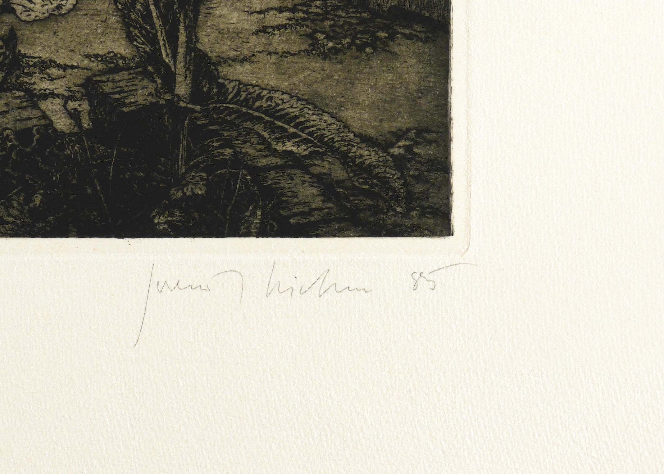 1985. Radierung / Strichätzung & Aquatinta, in Schwarz, mit Plattenton, auf chamois Hahnemühle. – Originale Künstlergrafik, von Gerenot Richter. – Auflage Exemplar Nr. I/V. – 48,2 x 63,5 cm (Darstellung / Druckbild), 49,3 x 64,2 cm (Platte), 61 x 79 cm (Blatt).