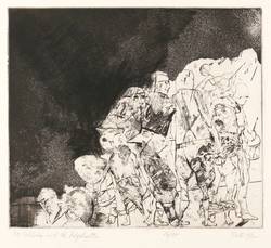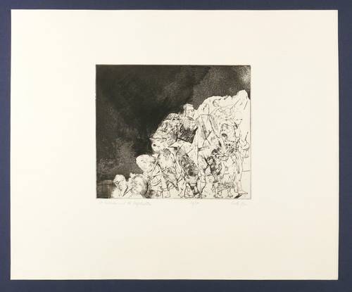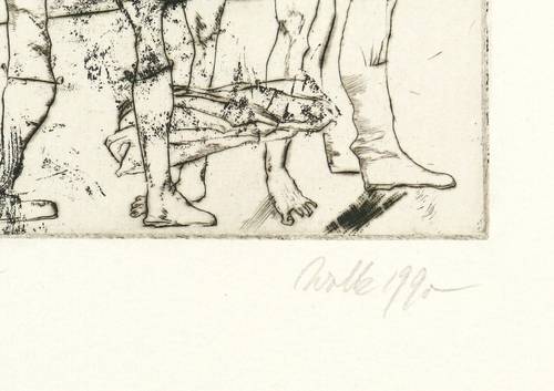 1990. Radierung / Aquatinta & Kaltnadel, in Schwarz, auf Weißenborn-Bütten. – Originale Künstlergrafik, von Winfried Wolk. – Auflage Exemplar Nr. 26/50. – 24,6 x 28,5 cm (Darstellung / Platte), 50 x 60 cm (Blatt).