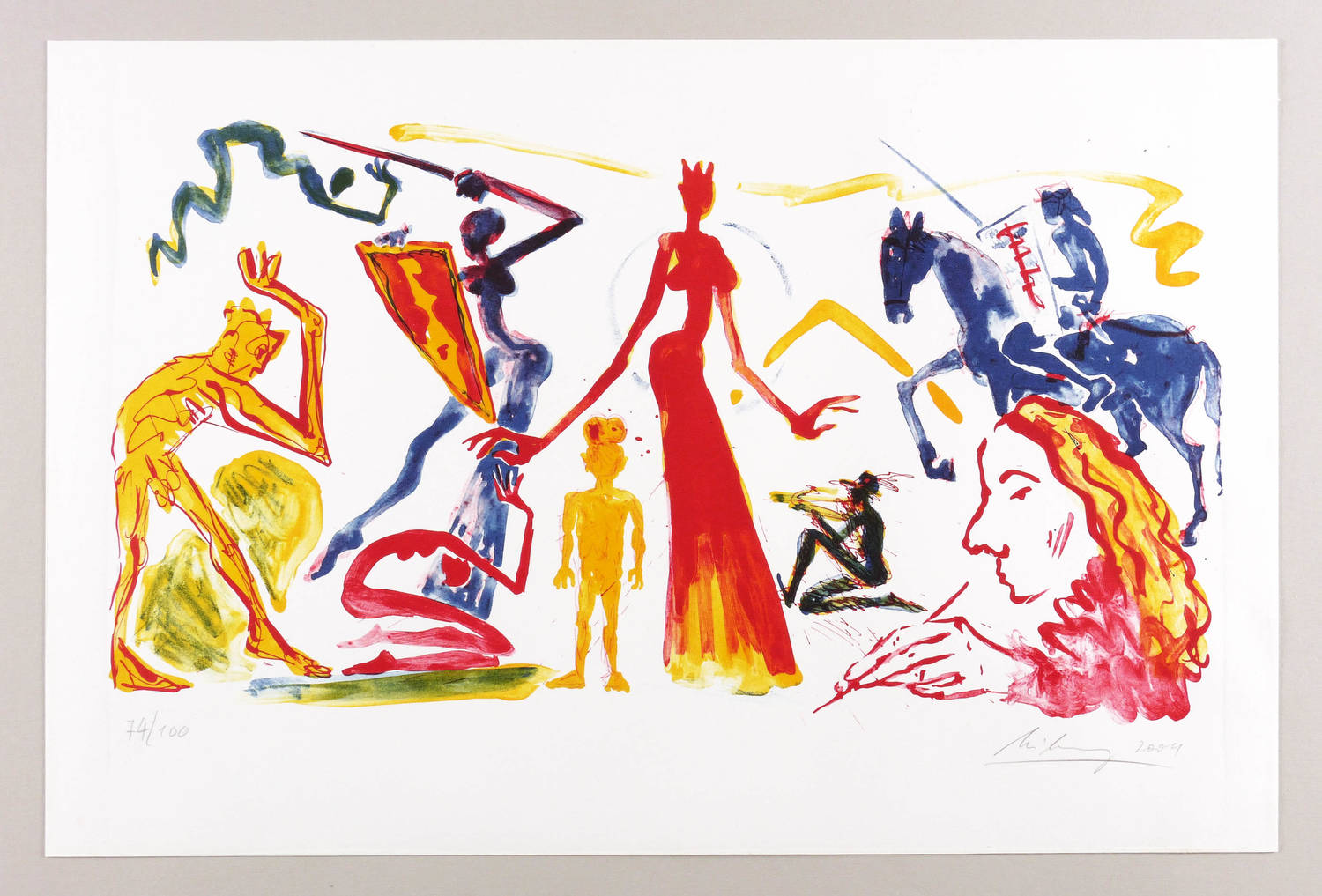 2004. Farblithografie / Pinsel- & Kreidelithografie, in 3 Farben, auf festem weißem Velin. – Originale Künstlergrafik, von Helge Leiberg. – Auflage Exemplar Nr. 74/100. – 30,5 x 57,5 cm (Darstellung / Druckbild), 43 x 64 cm (Blatt).