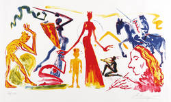 Rechts unten in Bleistift signiert und datiert: ″Leiberg 2004″. Links Auflagenbezeichnung. – Diese Farblithografie entstand im Zusammenhang der Einband- und Schuber- Gestaltung für die Künstleredition der Gesammelten Werke von Friedrich Schiller in 5 Bänden für die Büchergilde Gutenberg. – Tadellos. Sehr guter Zustand.