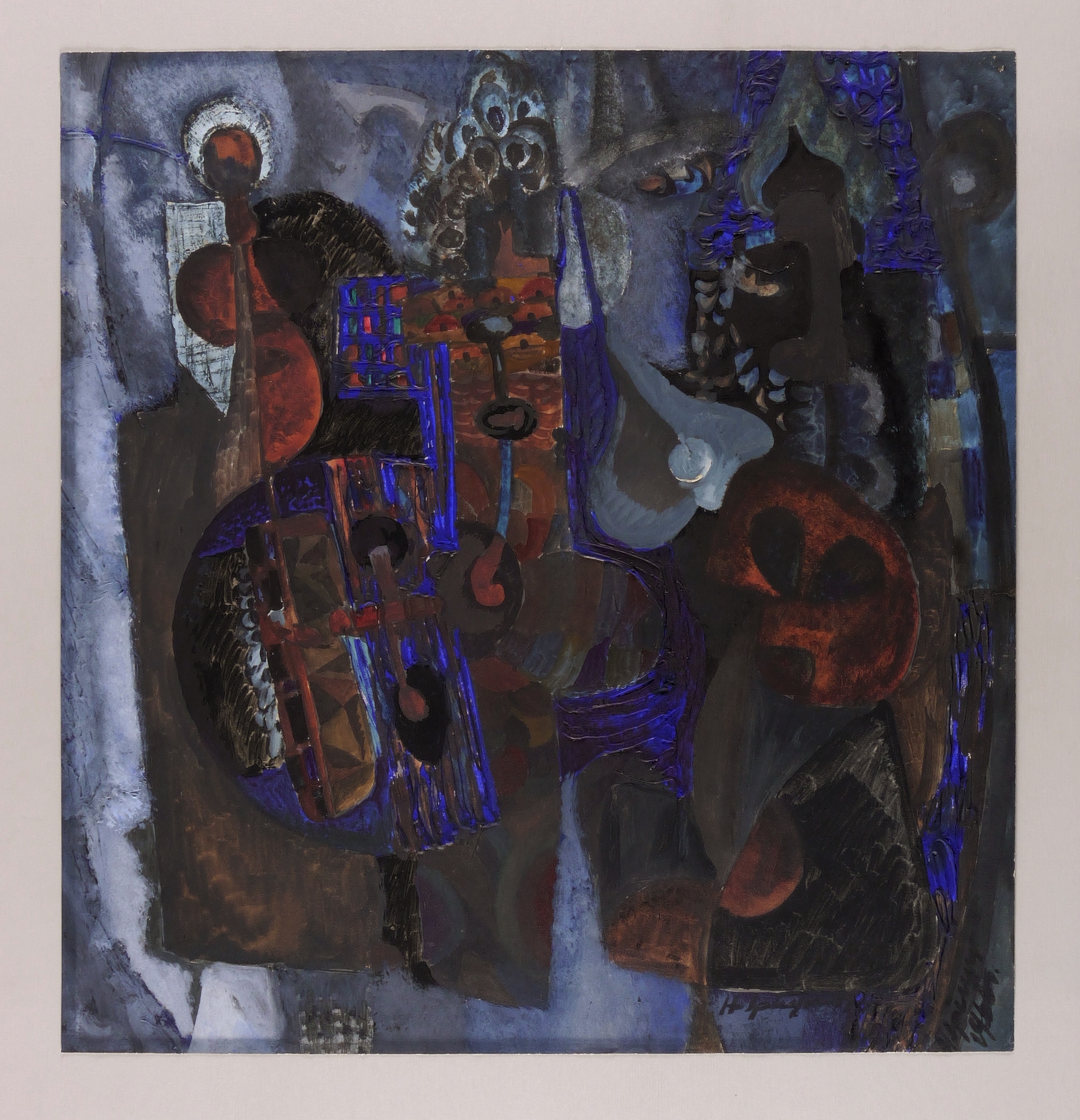 Grizjuk, Nikolai. – „Ohne Titel (Musikstillleben vor Stadtkulisse)”.