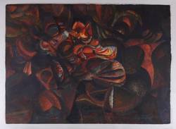 1969. Mischtechnik / Tusche, Aquarell & Tempera, auf hellgelbem Velinkarton. – Originale Künstlergrafik, von Nikolai Grizjuk. – Unikat. – 64,5 x 88,0 cm (Darstellung / Blatt).