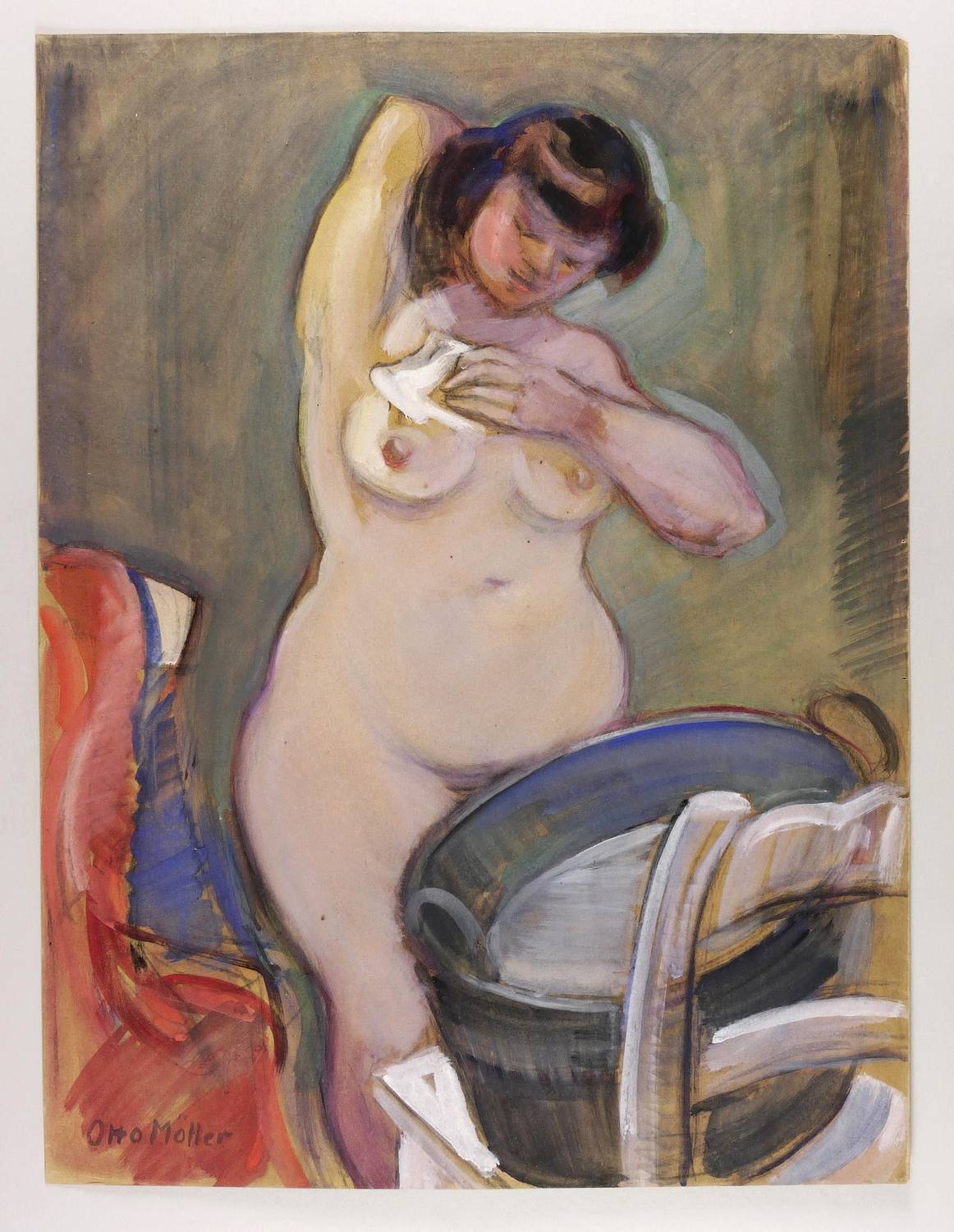 Links unten mit Pinsel signiert: ″OTTO MÖLLER″. – Sehr gute Gesamterscheinung. Ecke rechts oben mit geringem Substanzverlust. Winziger Randriss im rechten Rand unten hinterlegt. Insgesamt guter Zustand.