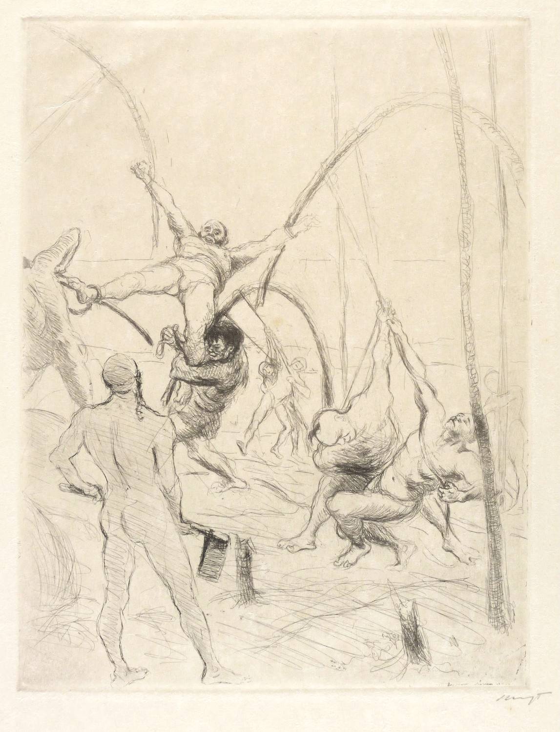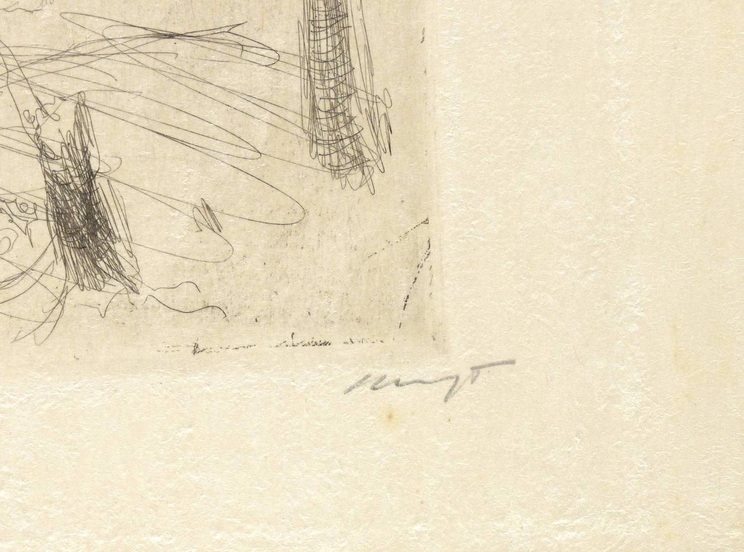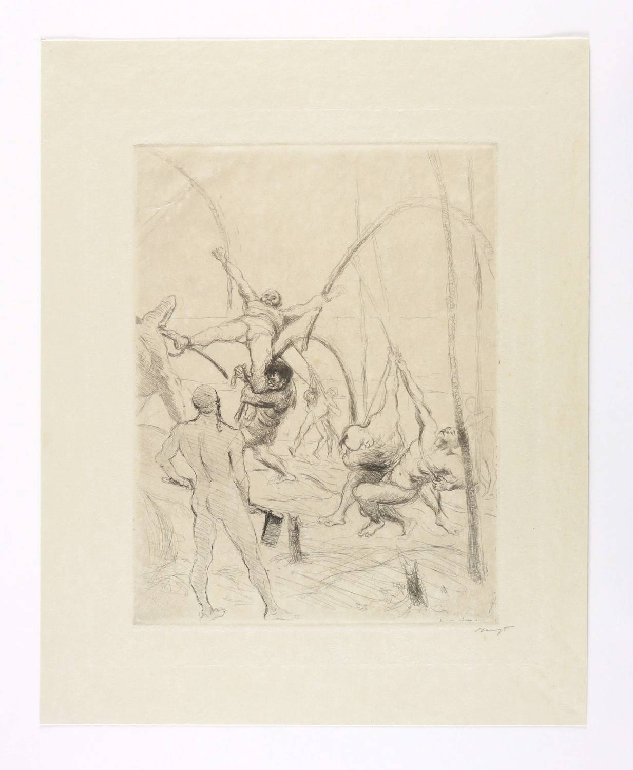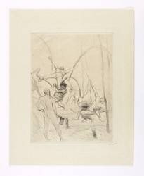 Sievers-Waldmann 7. – Rechts unten in Bleistift signiert: ″Slevogt″. – Blatt Nr. 3 aus der 1905 bei Bruno Cassirer in Berlin verlegten Folge ″Schwarze Scenen. 6 Radierversuche von Max Slevogt″ von 1904/05 (Rümann 89). Eines von 50 Exemplaren. Probedrucke oder Zustandsdrucke existieren nicht. – Im Passepartout montiert. Sehr guter Zustand.