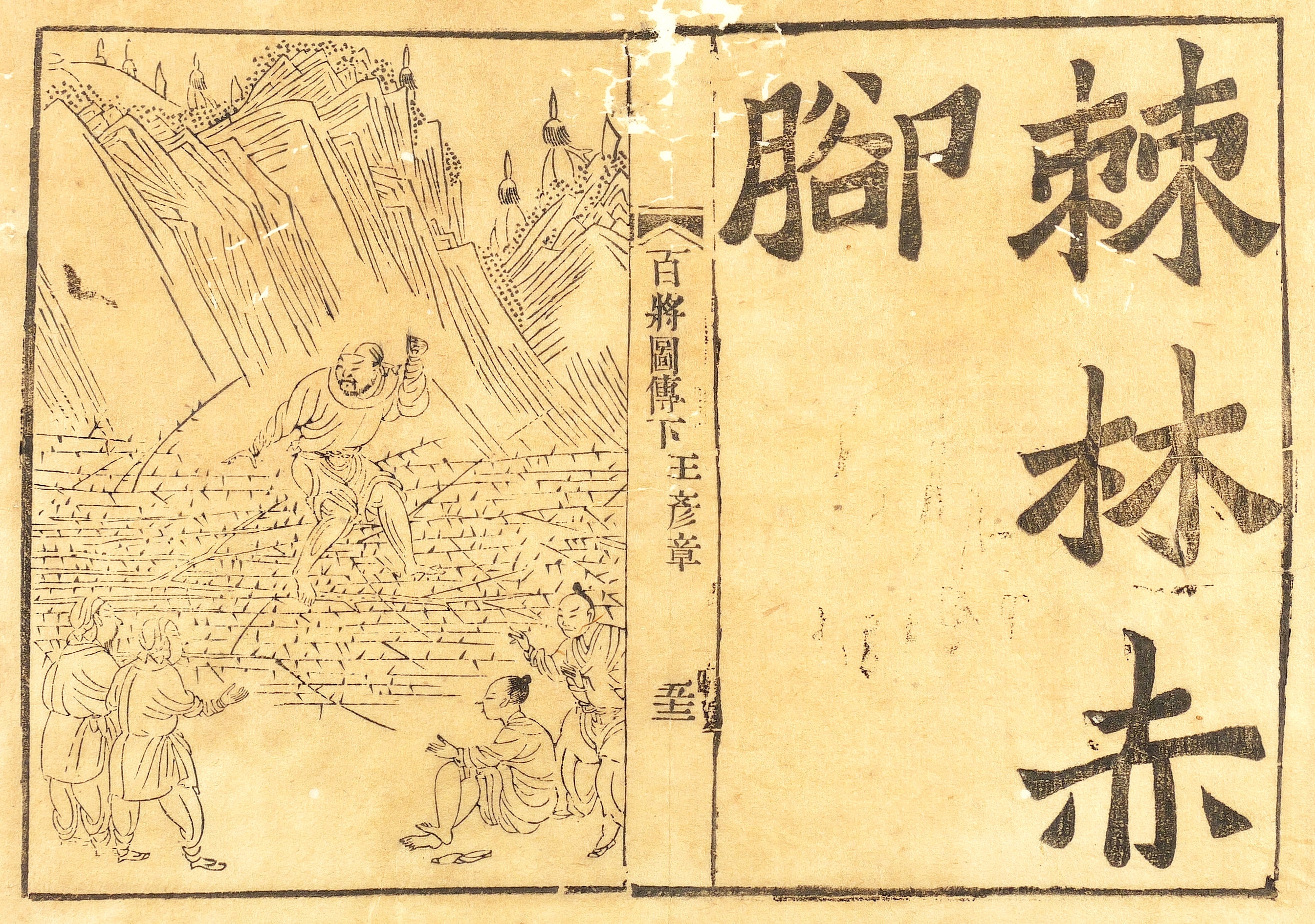 1825-1875. Holzschnitt, in Schwarz, auf Reispapier. – Von Chinesisch (19. Jh.). – 18,0 x 26,4 cm (Darstellung / mit Schrift), 25 x 29 cm (Blätter).