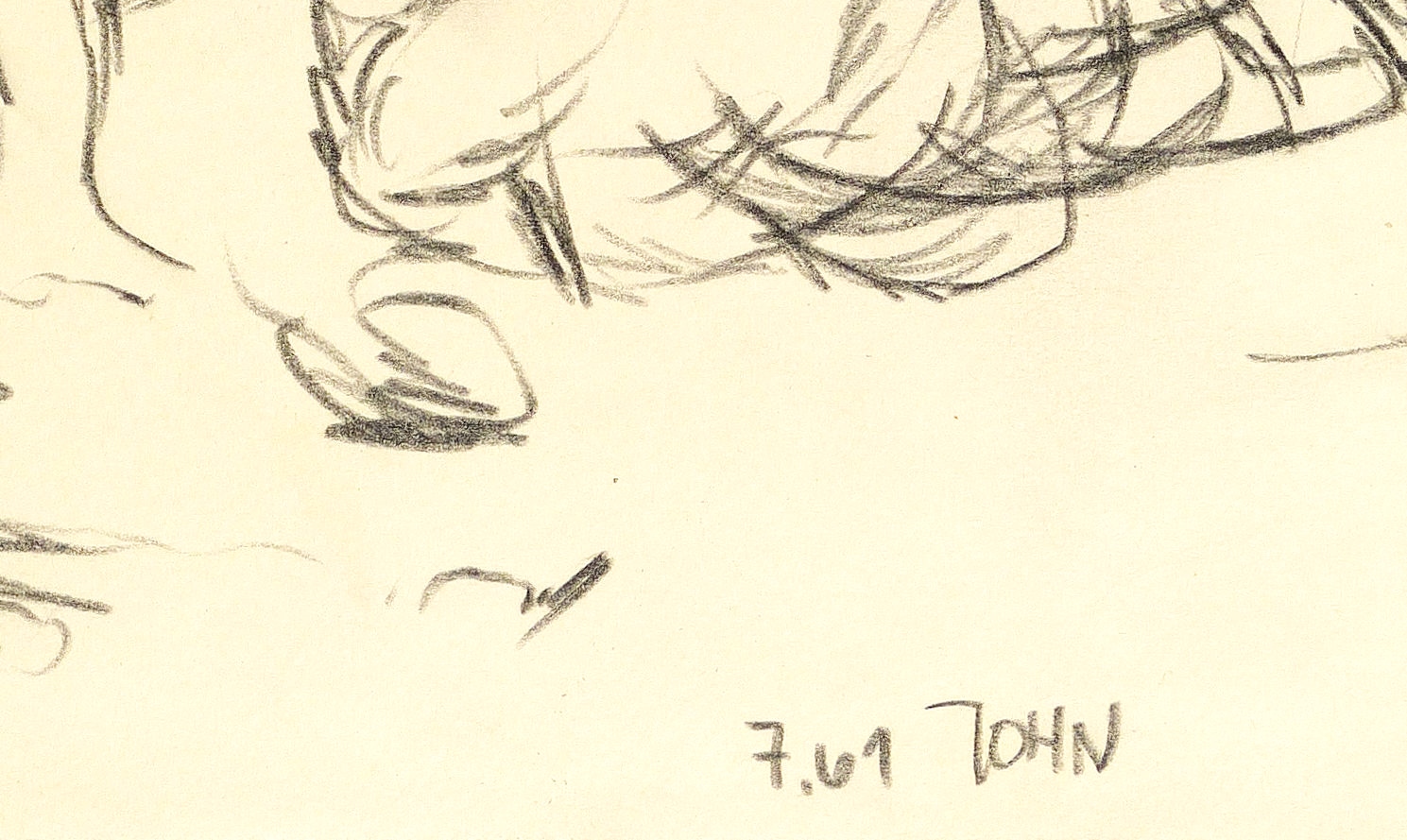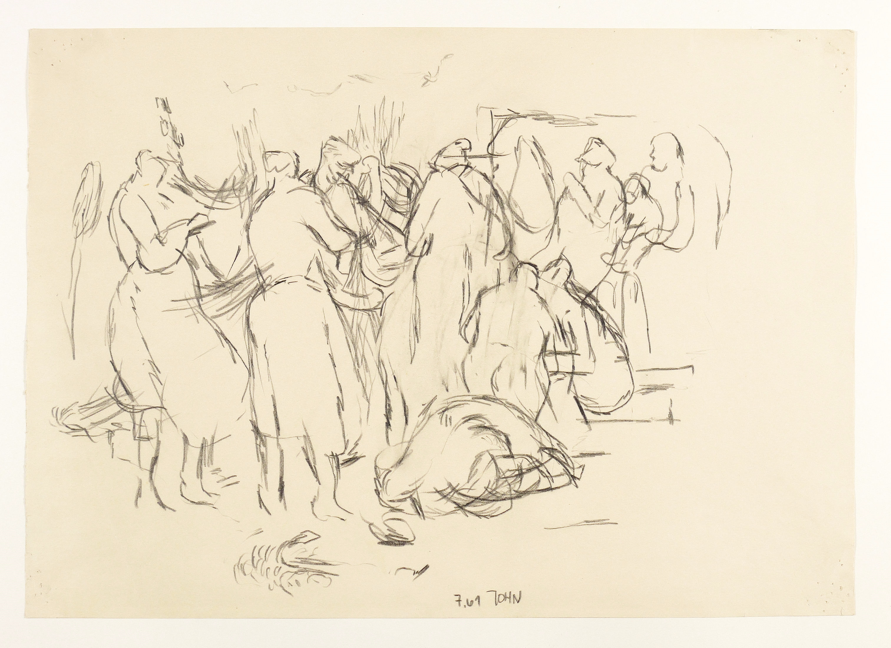 1961. Zeichnung / Bleistiftzeichnung, auf cremefarbenem Papier. – Originale Künstlergrafik, von Joachim John. – Unikat. – 30,0 x 42,0 cm (Blatt).