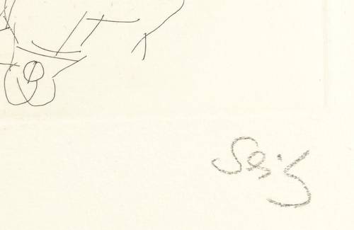1968. Radierung / Strichätzung, in Schwarz, auf hellchamois Büttenpapier. – Originale Künstlergrafik, von Gustav Seitz. – 31,8 x 23,6 cm (Darstellung / Druckbild), 54 x 40 cm (Blatt).