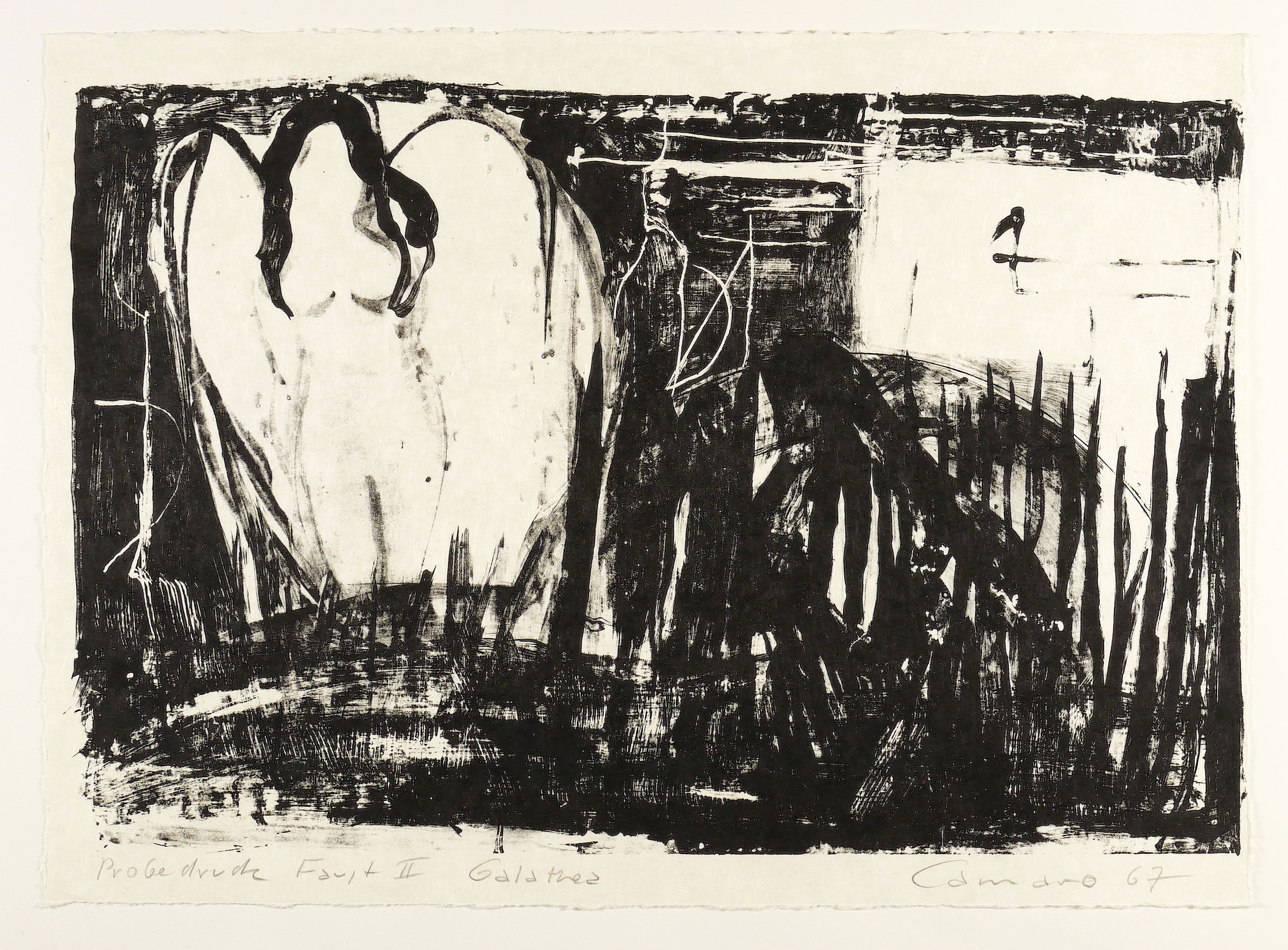 1967. Lithografie / Pinsellithografie, partiell geschabt, in Schwarz, auf kräftigem Japanpapier. – Originale Künstlergrafik, von Alexander Camaro. – Probedruck. – 39,4 x 59,4 cm (Darstellung / Druckbild), 45 x 61 cm (Blatt).