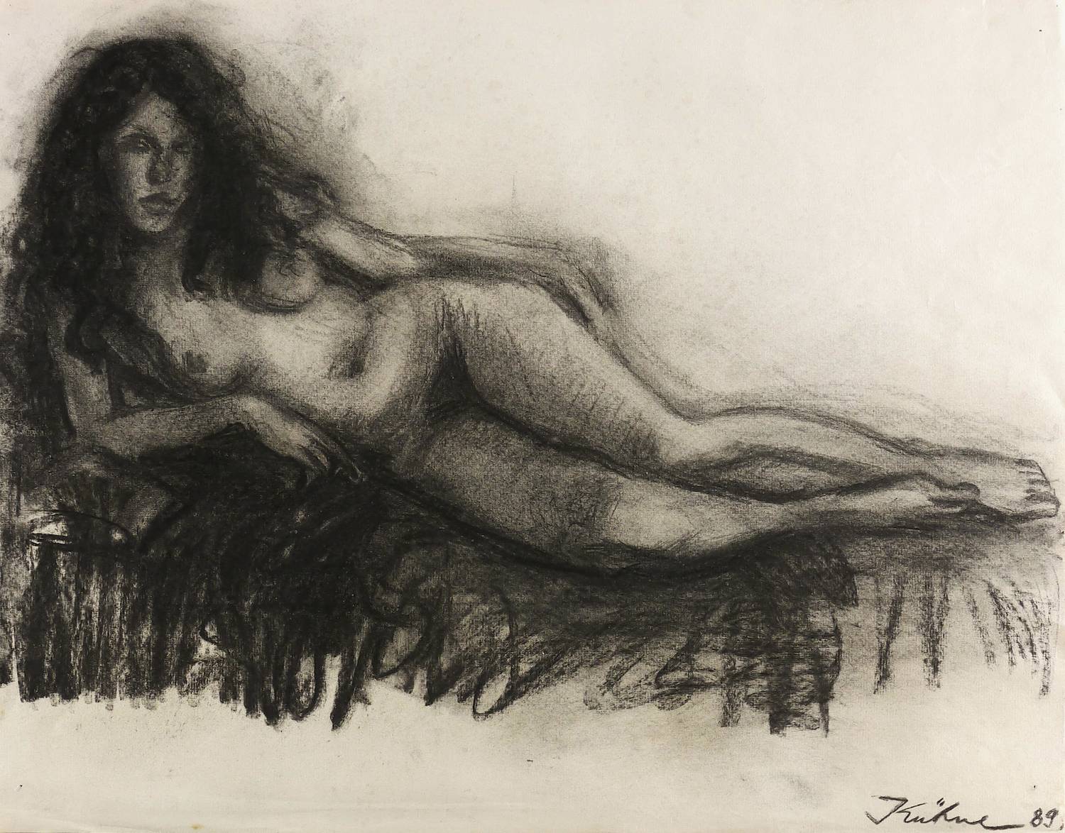 1989. Zeichnung / Kreidezeichnung, in Schwarz, auf hellchamois Maschinenbütten. – Originale Künstlergrafik, von Wolfgang Kühne. – Unikat. – 49,5 x 63,2 cm (Darstellung / Blatt).