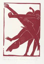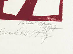 1997. Holzschnitt, in Rot, auf Hahnemühle-Bütten. – Originale Künstlergrafik, von Michael Hofmann. – Künstlerexemplar (e.a.) Nr. 3/7. – 41,5 x 28,7 cm (Darstellung / Druckstock), 64 x 48,5 cm (Blatt).