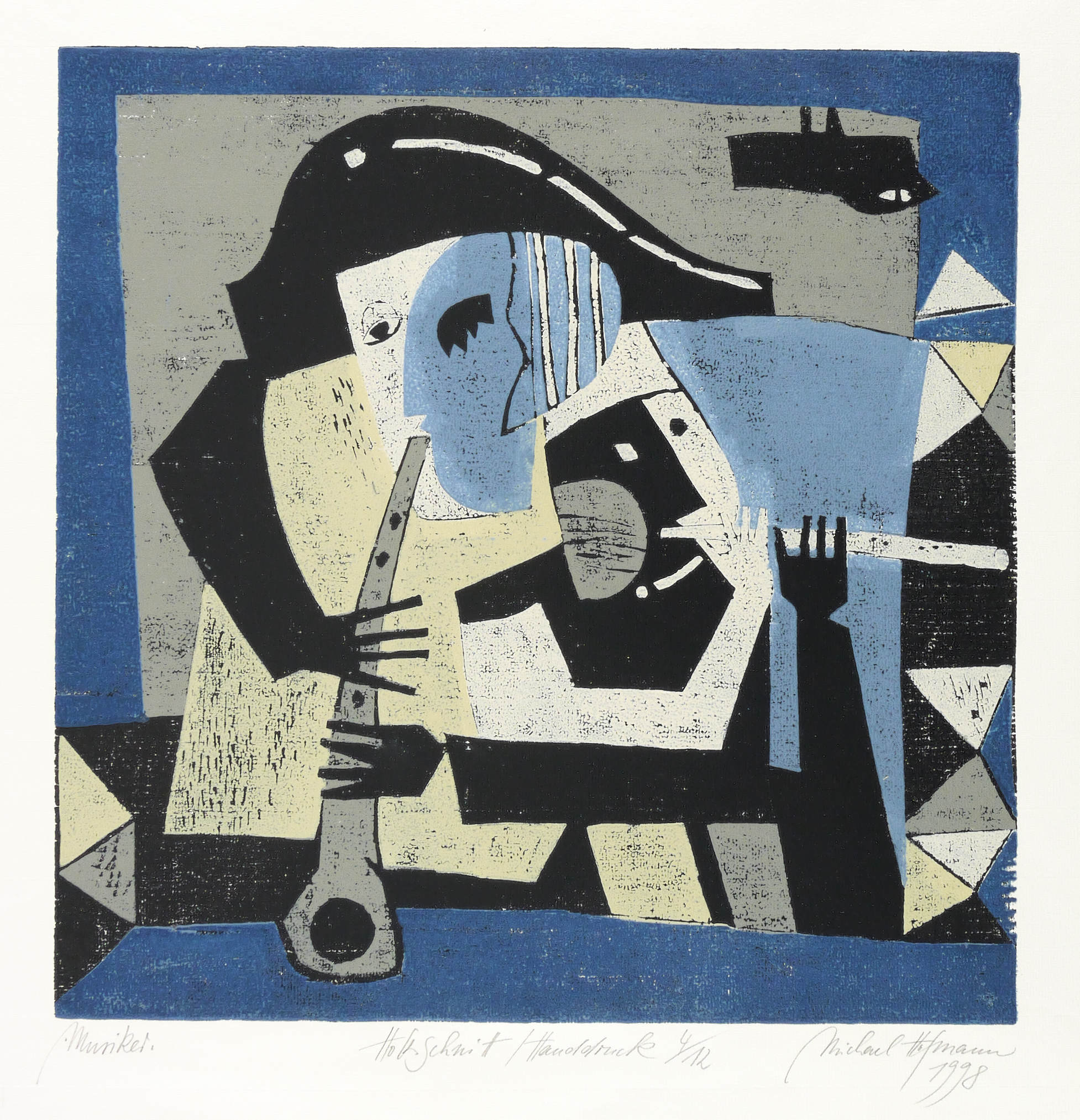1998. Farbholzschnitt, auf Hahnemühle-Bütten. – Originale Künstlergrafik, von Michael Hofmann. – Auflage Exemplar Nr. 4/12. – 37,2 x 37,0 cm (Darstellung / Druckstock), 63,5 x 49 cm (Blatt).