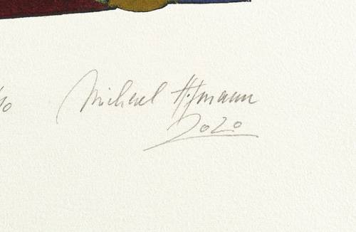 2020. Farbholzschnitt, auf Bütten. – Originale Künstlergrafik, von Michael Hofmann. – Auflage Exemplar Nr. 9/10. – 38,9 x 41,4 cm (Darstellung / Druckstock), 61 x 53 cm (Blatt).