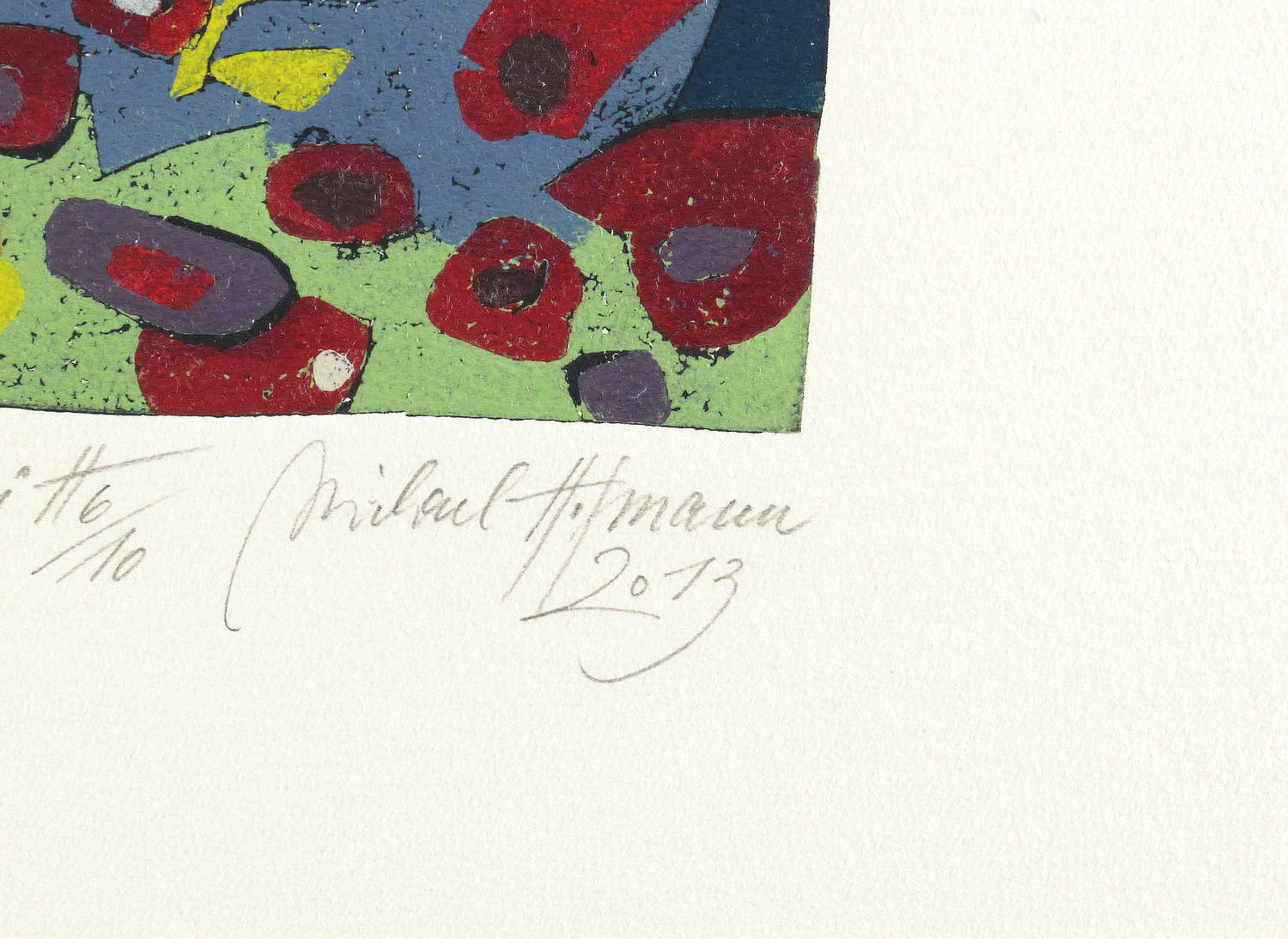 2013. Farbholzschnitt, auf Bütten. – Originale Künstlergrafik, von Michael Hofmann. – Auflage Exemplar Nr. 6/10. – 32,8 x 35,7 cm (Darstellung / Druckstock), 63 x 61 cm (Blatt).