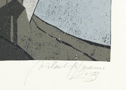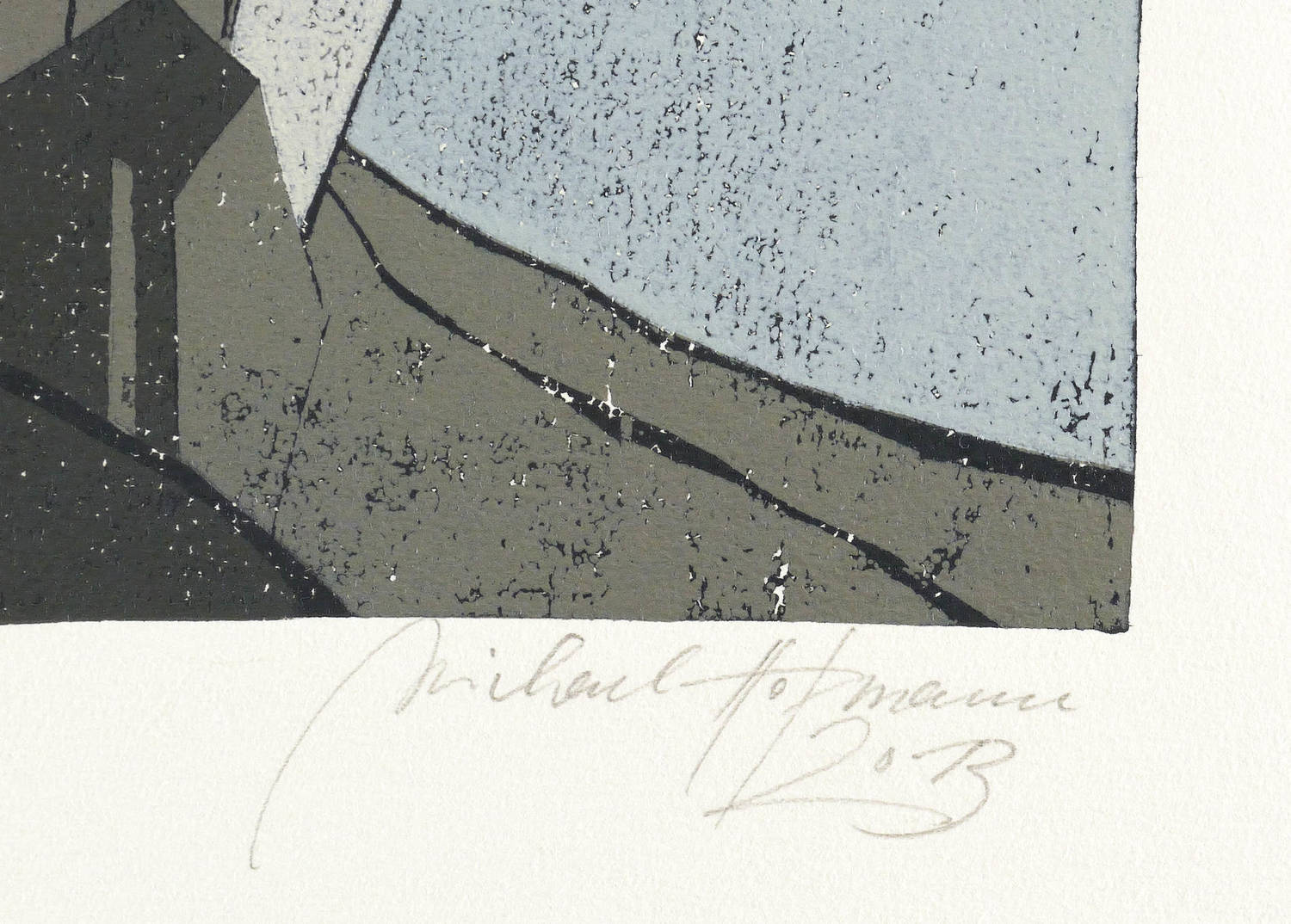 2013. Farbholzschnitt, auf Bütten. – Originale Künstlergrafik, von Michael Hofmann. – Auflage Exemplar Nr. 5/10. – 33,0 x 46,9 cm (Darstellung / Druckstock), 53 x 67 cm (Blatt).